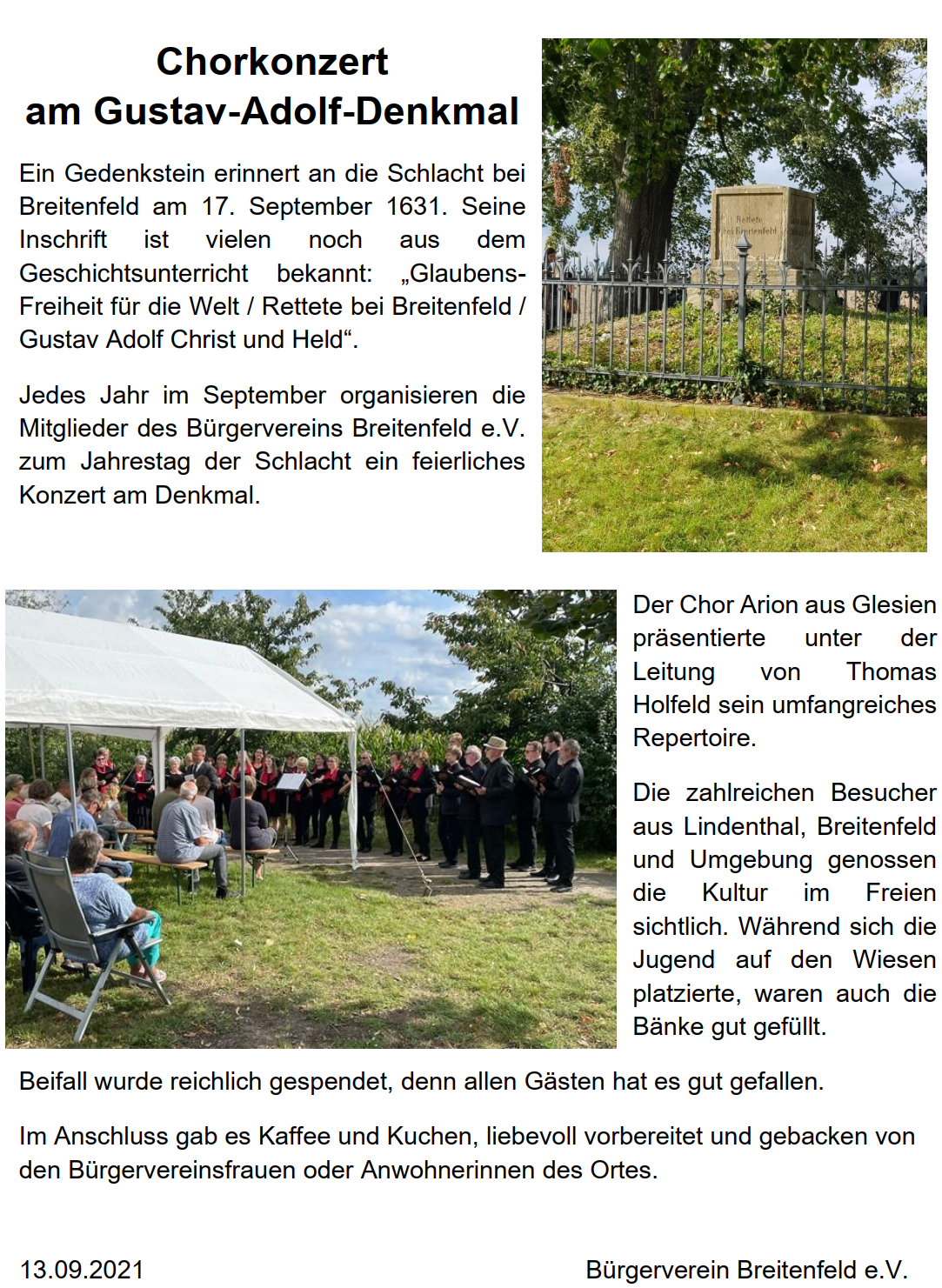 Im der Wahl vorangegangenen Rechenschaftsbericht wurde deutlich, wie viel allein in den letzten zwei Jahren erreicht worden ist. Trotz pandemiebedingter Einschränkungen konnte einiges auf den Weg gebracht werden. Das Heimatfest 2021, Chorkonzerte, gemeinsames Backen und Arbeitseinsätze brachte Breitenfelder und Gäste immer wieder auf fröhliche Art zusammen. Dahinter stehen das unermüdliches Engagement vieler Anwohner, die aktive Gemeinschaft leben, sich der traditionsreichen Geschichte des Ortes bewusst sind und diese weiterschreiben möchten.
